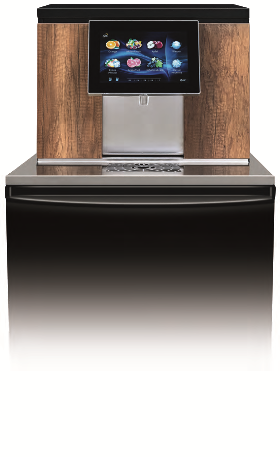 FULL-TOUCH Bedienung, Ausgabehöhe verstellbar (Option: FIX mit verstellbarem Glaspodest) und Zahlungssysteme (optional) wie Münzwechsler oder Cashless, Kreditkarten, SmartPhone-Pay, etc. mit allen Vorteilen des FRUCTOMAT!