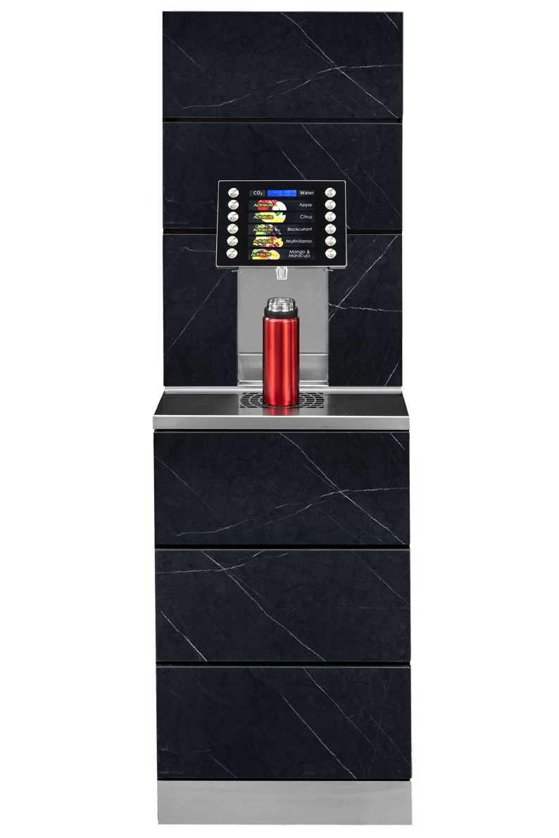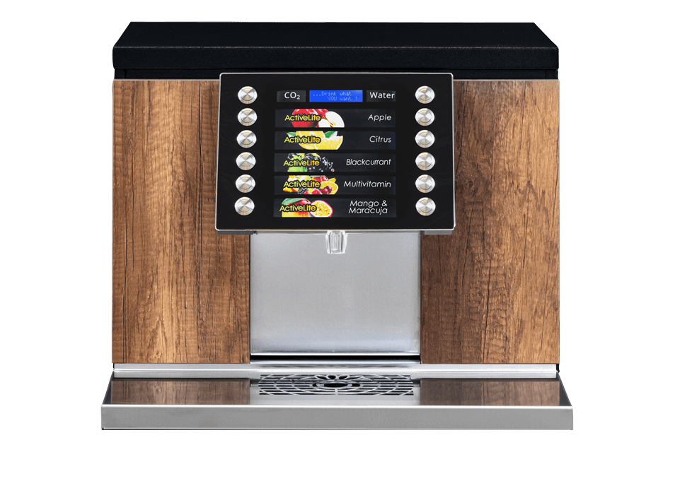 - 4/6 Getränkesorten + stilles Wasser (CO2 oder hot – OPTIONAL)