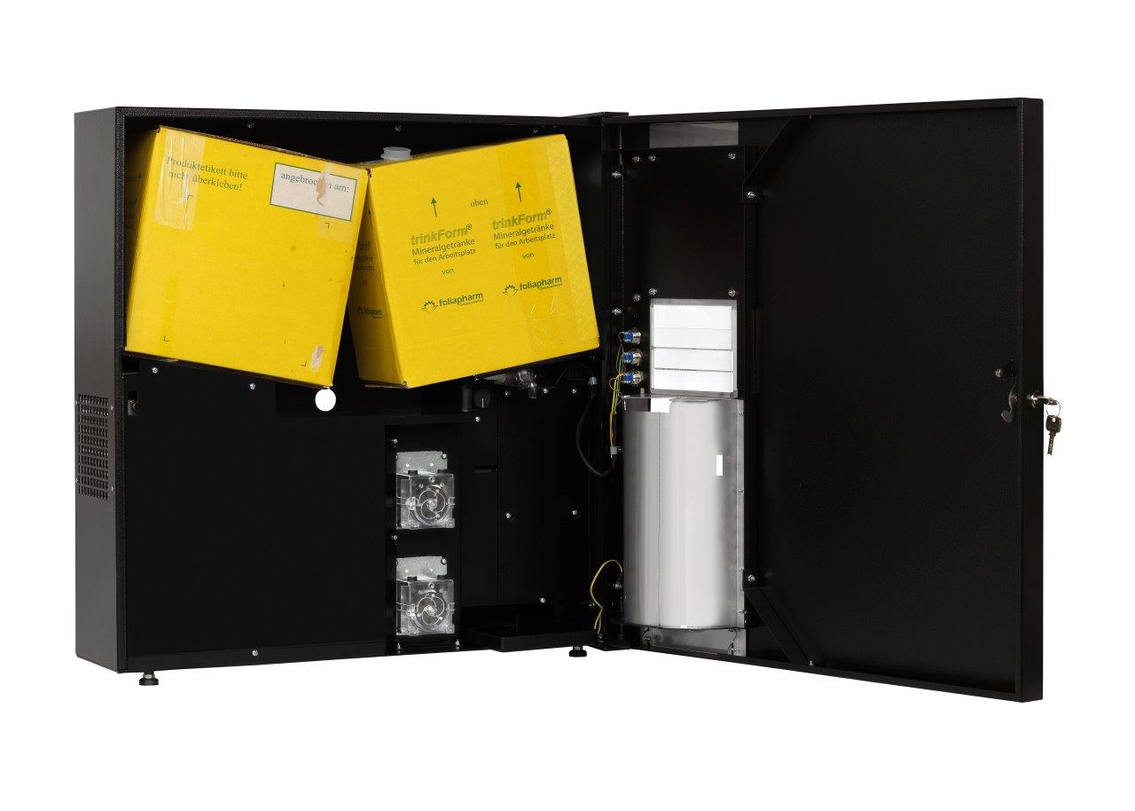 Unser Wandmodell wird direkt an der Wand installiert und bietet jetzt im Gerät Platz für 4x10 Liter Konzentrat Bag-in-Boxen + gekühltes Wasser. Der Getränkespender hat nicht nur ein unschlagbares, schlankes Design, sondern reinigt automatisch nach jeder Ausgabe für noch mehr Hygiene und ist einfach in der Handhabung. Vollelektronische Steuerung (Dosierung & Menge), hochwertige, robuste Materialien und vieles mehr…